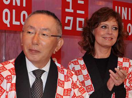 Entre los más ricos: el fundador y director ejecutivo de la cadena mundial de ropa casual Uniqlo, Tadashi Yanai, (arriba con la actriz estadounidense Susan Sarandon), tiene US$15.500 millones, según Forbes.